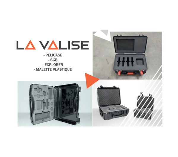 Toute une gamme de valises résistantes équipées de mousse découpée aux dimensions de vos objets pour un calage technique optimum.